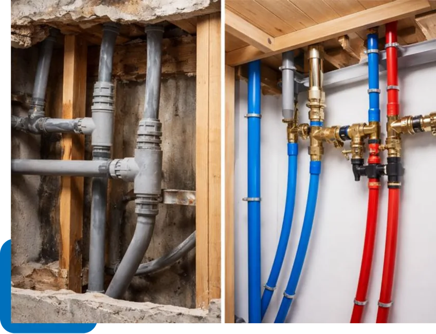 Our replacement methods minimize wall and ceiling openings whenever possible, reducing restoration requirements while still ensuring complete system replacement.